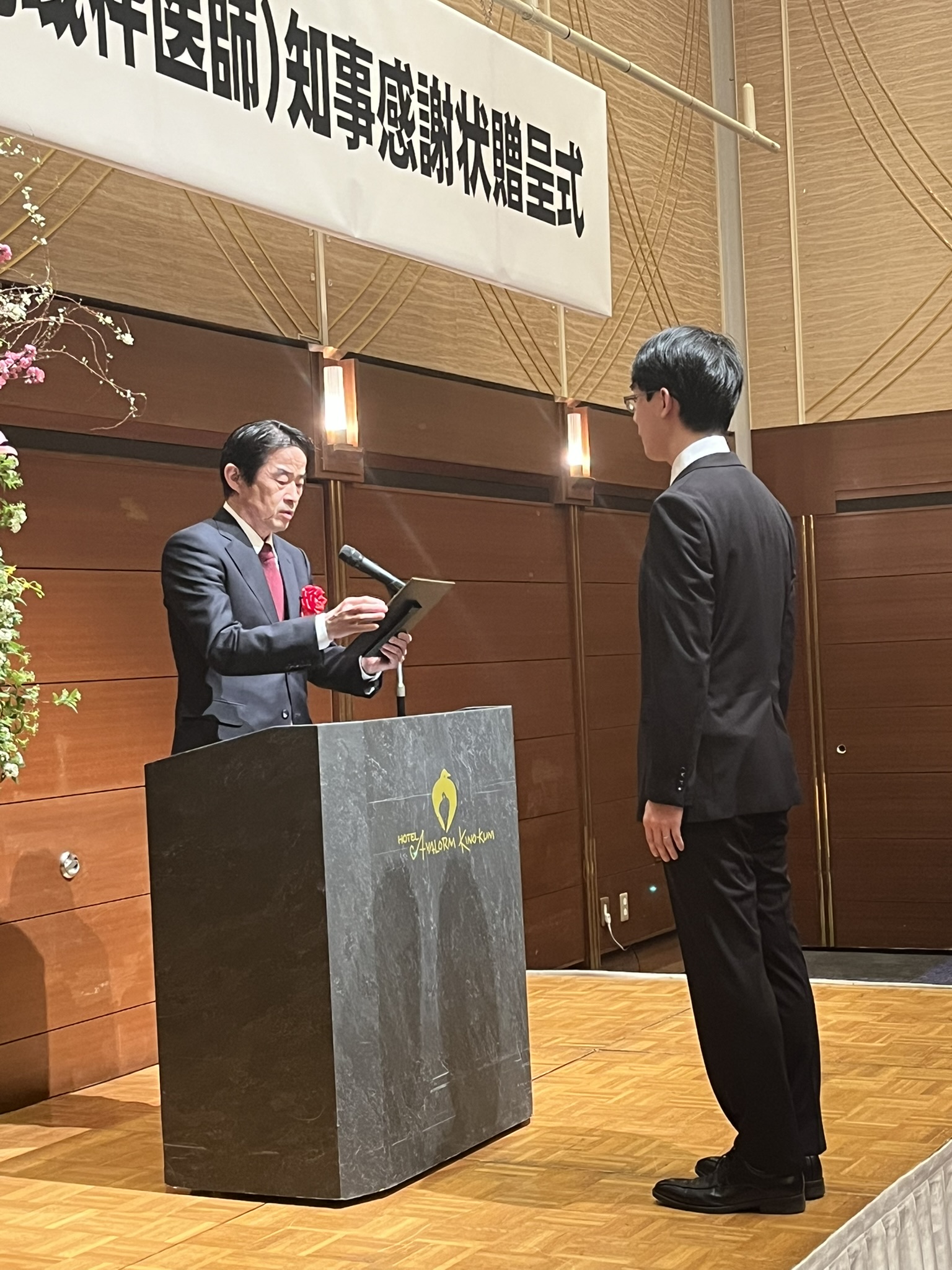 和歌山県が和歌山県立医科大学に設置した募集枠(県民医療枠、地域医療枠)または近畿大学を卒業した医師のうち、令和7年度末で県内公的医療機関での勤務義務の年限(卒業後9年間)を終了される方々に、これまで地域医療の確保と向上にご尽力いただいた功績をたたえるため、感謝状の贈呈式がホテルアバローム紀の国にて開催されました。